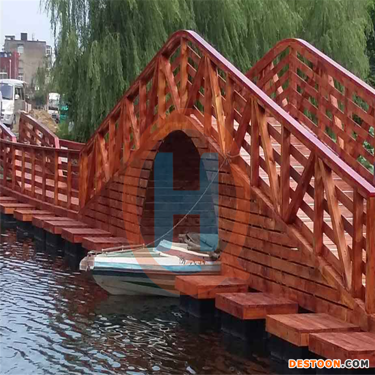 近年來經(jīng)濟(jì)的發(fā)展帶動人類的新需求,浮橋幾乎沒有被用于渡水工具,而更多的是用于觀光走廊——景觀浮橋。景觀浮橋和普通浮橋有很大的不同,普通浮橋產(chǎn)生浮力的一般是船,將船連在一起然后鋪上木板并打樁固定就成了一座浮橋用于做渡水工具。景觀浮橋比普通浮橋要先進(jìn)精細(xì)的多,景觀浮橋產(chǎn)生浮力的一般是浮箱,浮箱有塑料浮箱和混凝土浮箱之分,浮箱上面鋪的是防腐木面板,為更利于人們游玩觀賞而做的浮橋。