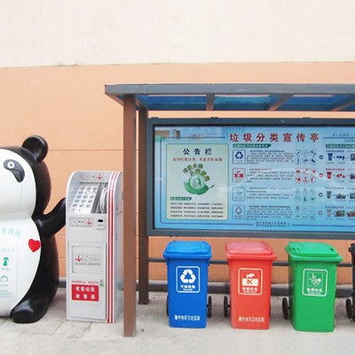 生活垃圾分類收集是城市生活垃圾處置的主流趨勢,也是現代城市文明進步的標志之一,有利于提升垃圾清運效率,便于再生資源的回收利用,減少環境污染,緩解環衛工人常規保潔的壓力。垃圾分類亭內設置可回收、有害垃圾、廚房垃圾和其他垃圾等垃圾桶,廣大群眾可以根據垃圾桶的提示標語,將廢棄的生活垃圾投放到對應的垃圾桶中