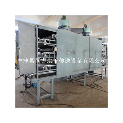 通常情況下,主體是不銹鋼網帶或不銹鋼沖孔鏈板帶透氣率高達70%左右,且熱氣流幾乎是垂直穿透物料,所以熱交換較充分。空氣介質分上、中、下層分別與物料接觸,上層為高溫氣流與含水率高的物料接觸,使其能實現快速脫水的目的;中層為室溫氣流,使物料實現后期干燥。因該層氣流穿透物料后,空氣相對濕度不高,固部分循環回用;下層為室溫氣流,穿透物料層即降低了料溫,又回收了部分熱量,從而滿足了許多食品、工業和農場物料干燥工藝的特性要求,確保產品的質量。