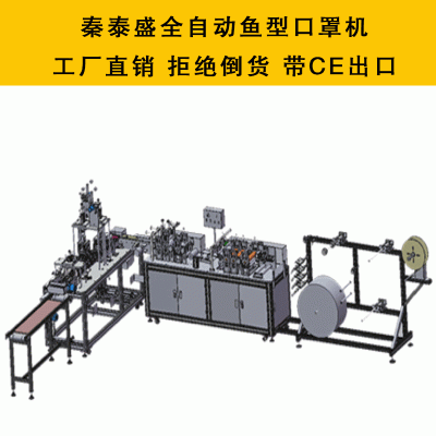 全自動魚型口罩機是廣東秦泰盛智能化科技有限公司開發的一款口罩機設備,國外市場買點特別突出的全自動魚型口罩機,本機自動化程度高, 通過PLC編程控制, 可做到口罩壓紋、對折、穿孔、切邊一次成型,特殊的制作工藝確紋路清析、在生產時不變形,可限度的減少材料浪費,而且有效的保證了生產出的口罩質量。