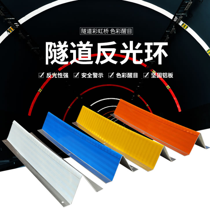 隧道反光環(huán)采用反光膜與反光基板相結合的方式制作而成,利用***的廣角微棱鏡特性,發(fā)揮出超強的反光效果,提高隧道內亮度,從而降低隧道內外明暗反差,迎著行車面沿隧道內輪廓安裝,****終呈現為一個半圓的光圈。反光環(huán)還可以幫助駕駛員判斷隧道寬度,可以增強對過往駕乘人員的視覺效果,起到減緩視覺及精神疲勞的作用,解決進出隧道時、因明暗反差導致的瞬間“失明”。